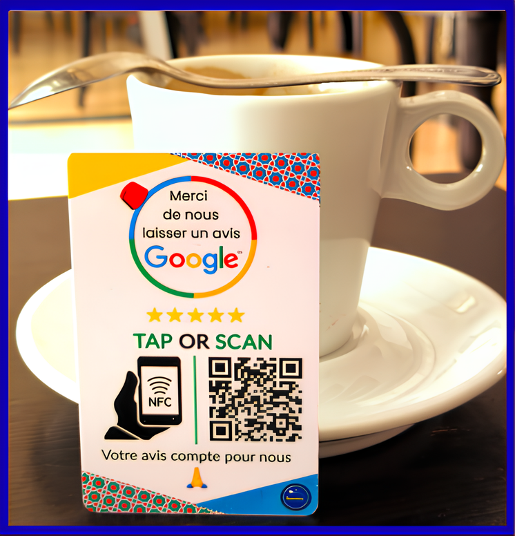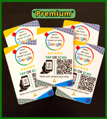 Boosteni™ est une carte NFC + QR Google. Vous la montrez à votre client, il tapote ou scanne, et laisse son avis en quelques secondes.